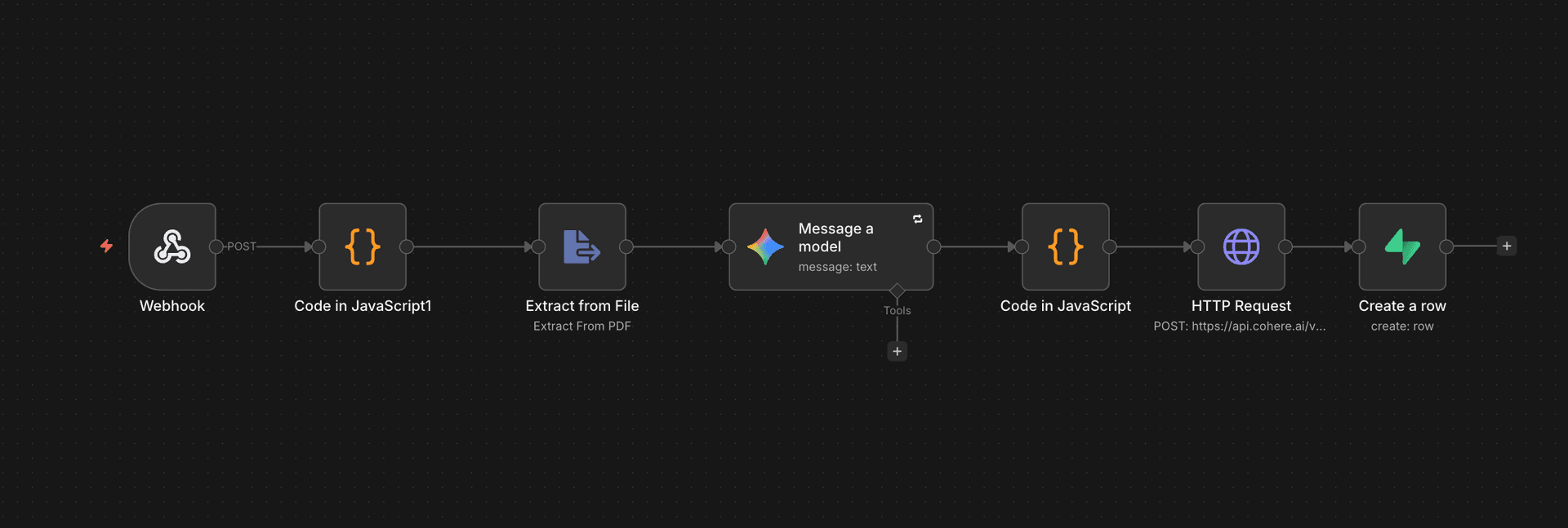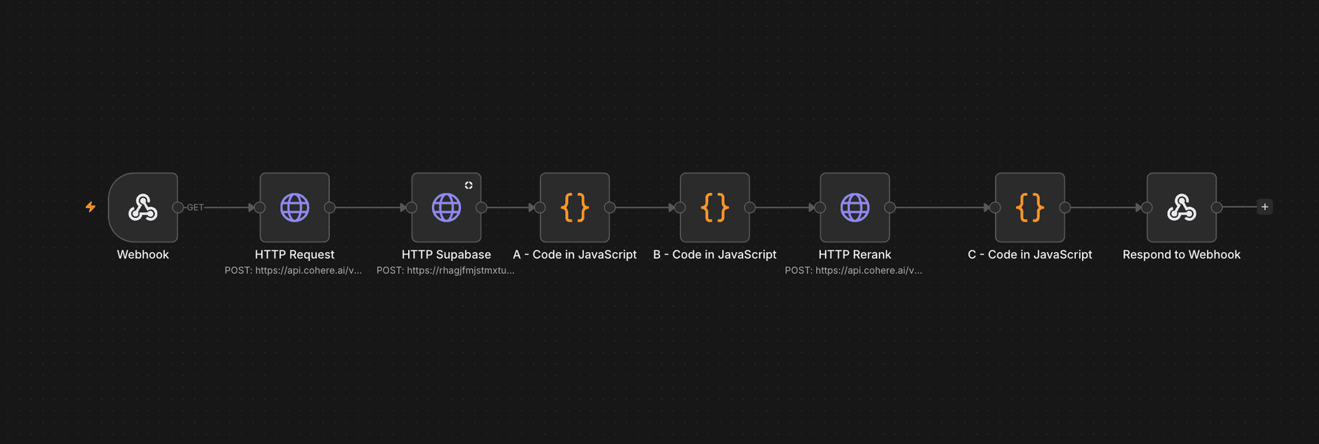 Un pipeline sémantique en 5 étapes : vectorisation des CVs avec Cohere Embed, indexation dans Supabase pgvector, recherche par similarité cosinus, reranking Cohere pour maximiser la pertinence finale, scoring avec explication. Orchestration complète dans n8n avec gestion des seuils et logique de fallback.