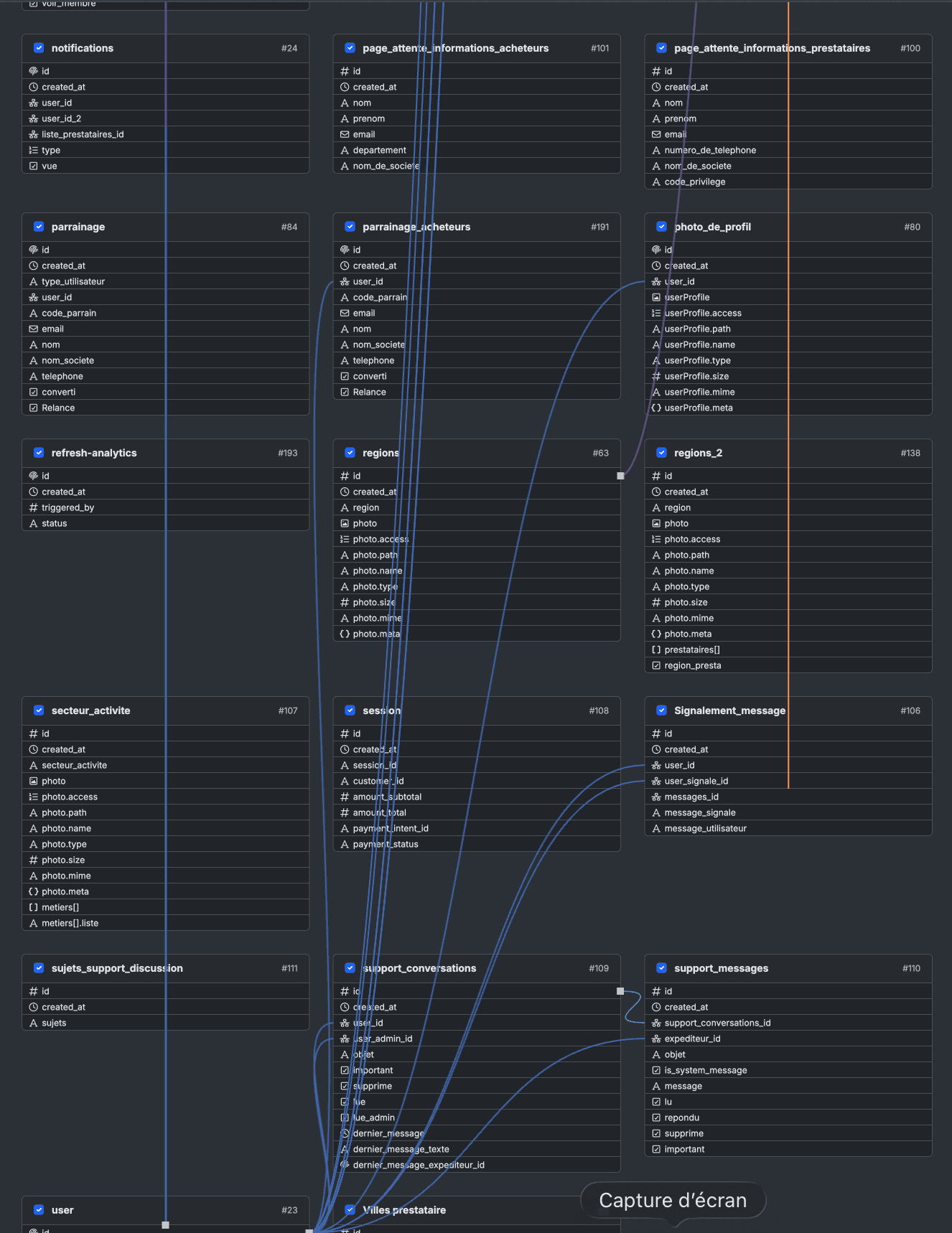 Conception et développement d'une plateforme B2B complète en no-code : espace prestataire avec profil et portfolio, espace entreprise avec recherche filtrée et messagerie, système de matching automatisé, dashboard analytics GA4 avec rapports IA générés par Gemini 2.5 Flash, et back-office admin complet via Xano.
